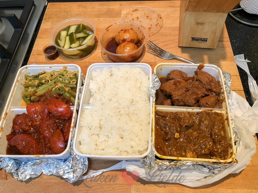 Ella-Marie is vandaag en morgen bij mijn ouders logeren, zodat ik twee volle werkdagen heb. Omdat ik wat langer doorwerk, besluit ik ’s avonds eten af te halen bij Makan Ilahi in Culemborg. Hier kun je heerlijk Indisch eten afhalen of bestellen om te laten thuisbezorgen (mits je in Culemborg of Beusichem woont) gemaakt door mijn lieve vriendin Renée. Ik moest van Culemborg weer terug naar Tiel rijden, maar het eten was nog steeds goed warm. En goddelijk lekker!