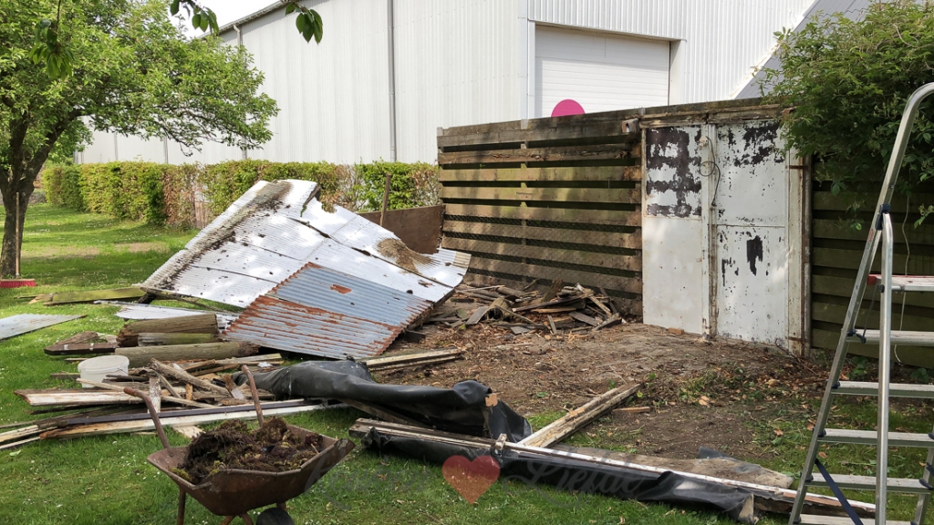 Eenmaal weer thuis zien we dat Johan hard heeft gewerkt. Hij heeft in onze afwezigheid namelijk het oude kippenhok afgebroken! Dit lijkt ons namelijk een heerlijk plekje om een terras te creëren… #stapvoorstap #tuindoelen