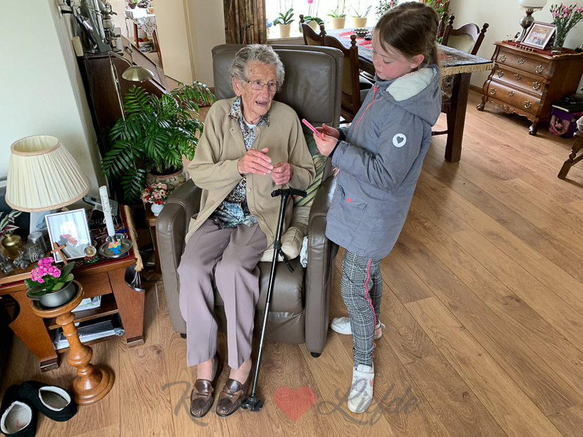 Na ons bezoekje aan de kittens rijden we even langs bij de oma van Johan. Ella-Marie kan niet wachten om de foto’s van de kittens te laten zien en oma staat ook te popelen. We moeten haar beloven dat we de kittens komen laten zien als we ze over een paar weken gaan ophalen. Beloofd oma! 🙂