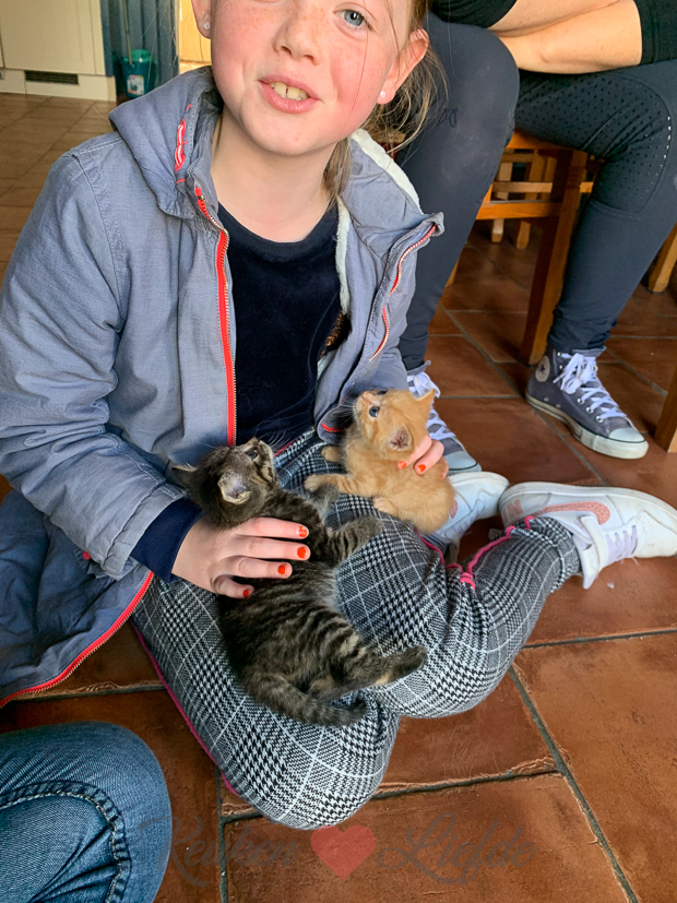 Ella-Marie en ik gaan ’s middags weer even bij onze twee kittens kijken. Ze zijn inmiddels 5 weken oud en al flink gegroeid. Het beginnen echte deugnietjes te worden!