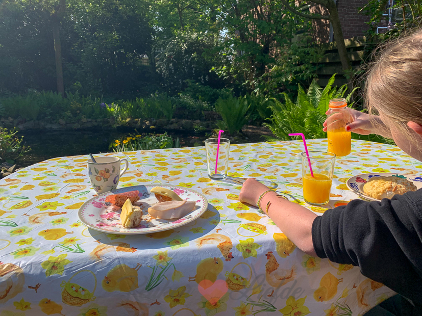 De tweede week van de meivakantie gaat van start en die beginnen El en ik met een lekker onbijtje in de tuin.