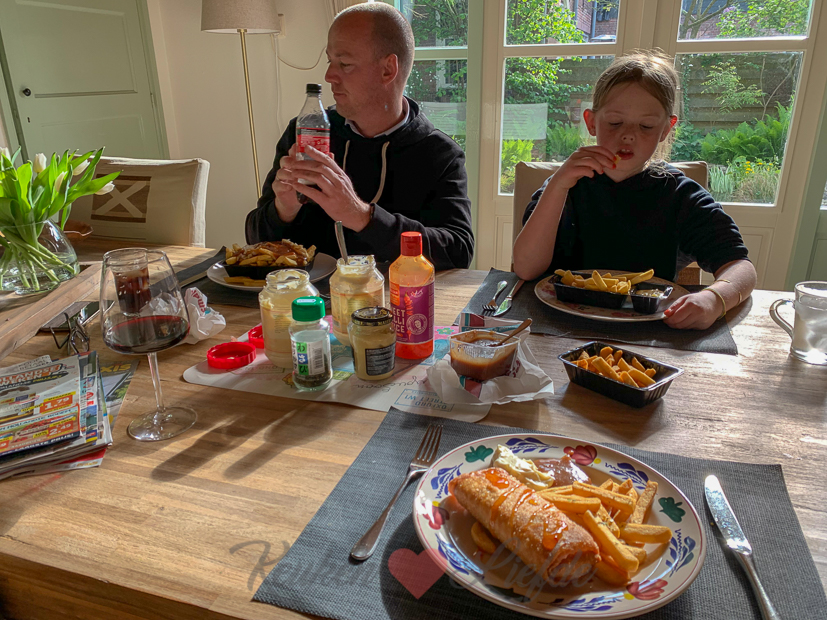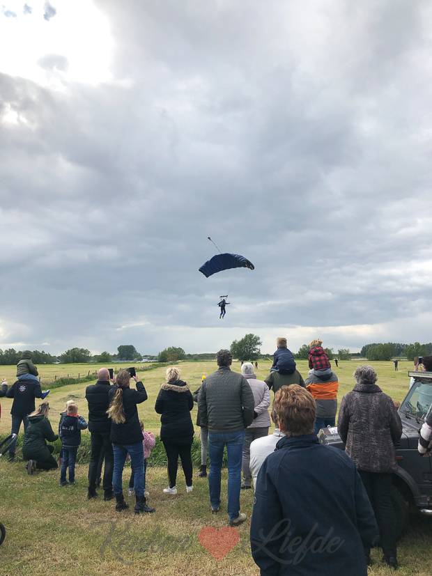 ’s Middags lopen we naar het bevrijdingsfestival dat vlakbij ons huis is. Vanuit een vliegtuig worden er broodjes gedropt en er landt een parachutiste (zie de video’s op onze IG-Stories!). Ook zijn er optredens van regionale bands. Ondanks het wisselvallige weer zat de sfeer er goed in en was het supergezellig! We aten op het festivalterrein een frietje dus ik hoefde ’s avonds geen eten meer te koken.