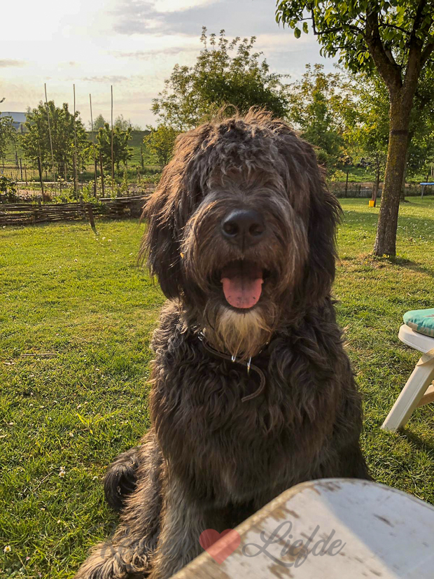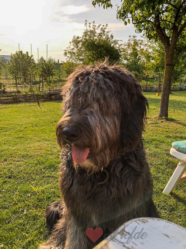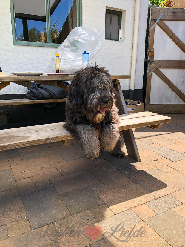 Die denkt maar aan één ding. Hoogste tijd dat ook de trimsalons weer opengaan trouwens. Er hangt al weken een gordijn voor zijn ogen.