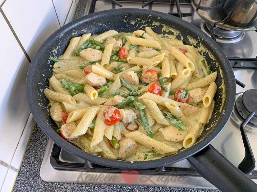 Ik maak twee nieuwe KL-recepten vandaag: pasta pesto met kip en sperziebonen en prei risotto. Recepten komen eraan!