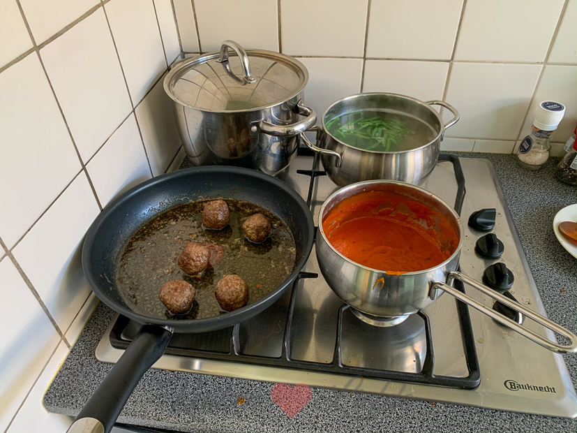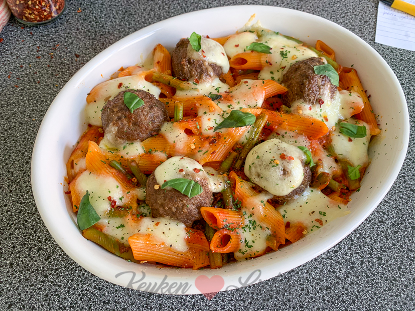 Ook vandaag maak ik weer twee nieuwe KL-recepten: pasta gratin met pesto gehaktballetjes en spinaziestamppot met pestogehaktballetjes. Die pesto gehaktballetjes kun je overal wel bij eten, zo lekker! 🙂