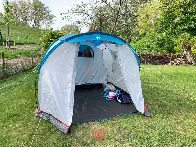 Voor Ella-Marie hadden we een tentje besteld en die komt binnen vandaag. We zetten hem gelijk maar even op. Deze zomer kamperen we in eigen tuin! 🙂