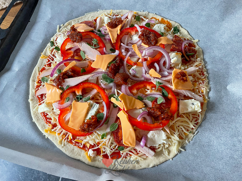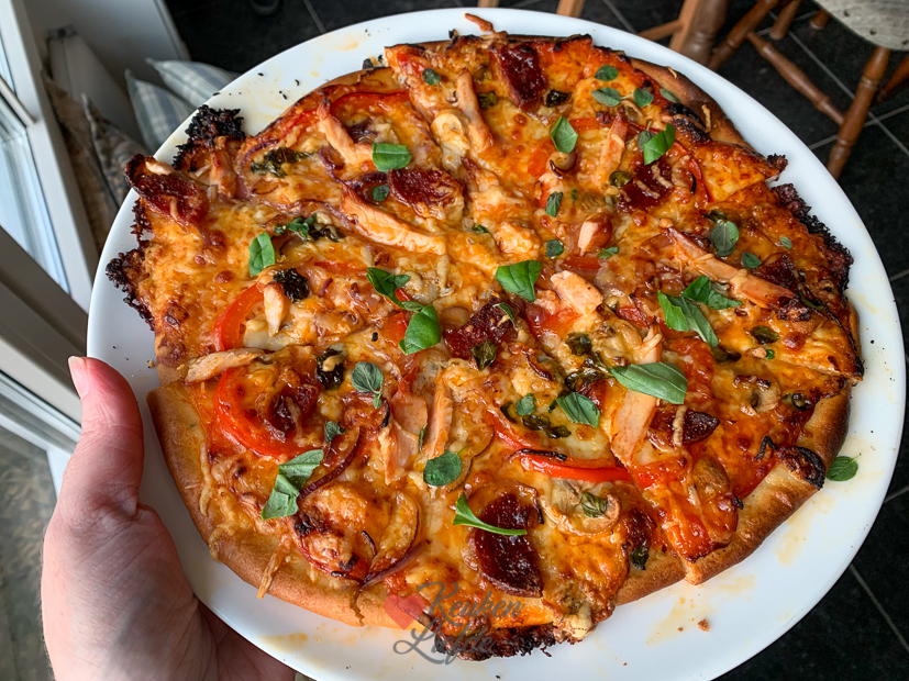 Bevrijdingsdag. Johan is de deur uit dus ik ben alleen thuis. In de ochtend werk ik op kantoor. Daarna maak ik een lekkere lunch klaar voor mezelf met avocado en een gepocheerd ei. Ook maak ik op de valreep nog een lekker moederdagrecept voor de website. Hier vind je het recept. Dit monkey bread is niet alleen voor Moederdag hoor. Het smaakt ook lekker op elke andere dag van het jaar! Daarna maak ik nog pizzadeeg in de keukenmachine en laat het twee keer rijzen. Daarna gooi ik 2 bolletjes deeg in de vriezer en de andere rol ik ’s avonds uit voor het avondeten. Vanavond eten Johan en ik zelfgemaakte pizza!