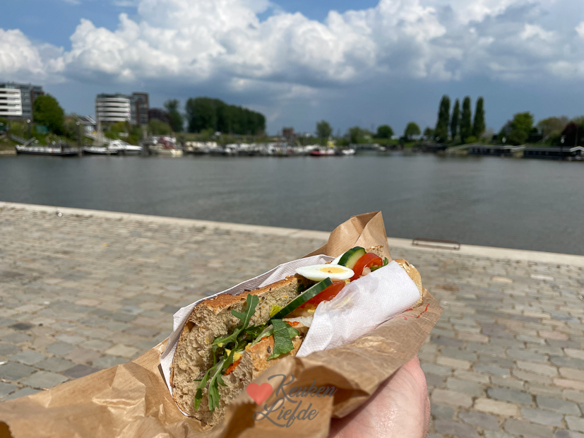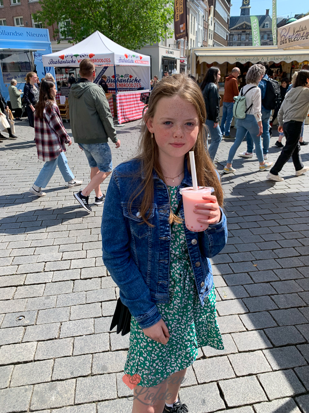 Ella heeft vandaag geen voetbalwedstrijd dus gaan we na het ontbijt met z’n drieën naar Tiel om schoenen te kopen voor Ella. Niet normaal hoe snel zij schoenen verslijt! We zetten de auto een dorp verderop bij het voetveer neer en aan de overkant van de Waal lopen we zo de stad in. Niet veel later zijn we nieuwe schoenen en een stuk kaas rijker (ik kan geen markt voorbijlopen zonder eten te kopen) en wandelen we met broodjes en een bakje kibbeling weer terug naar de Waalkade. Daar lunchen we op een bankje in het zonnetje met uitzicht op de Waal. Daarna varen we de Waal weer over en niet veel later zijn we thuis. Voor het avondeten bak ik twee overgebleven hamburgers van gisteren rul met wat restjes groenten en kneepje tomatenfrito en beleg daar 2 opengesneden afbakbroodjes mee. Wat kaas erover en even gratineren in de oven. Een lekkere salade en wat röstirondjes erbij en klaar zijn we weer. ’s Avonds gaan we bij het toneel kijken waar Johan zijn moeder al jaren bijzit en een rol speelt. Zo ook vanavond. Was weer leuk!