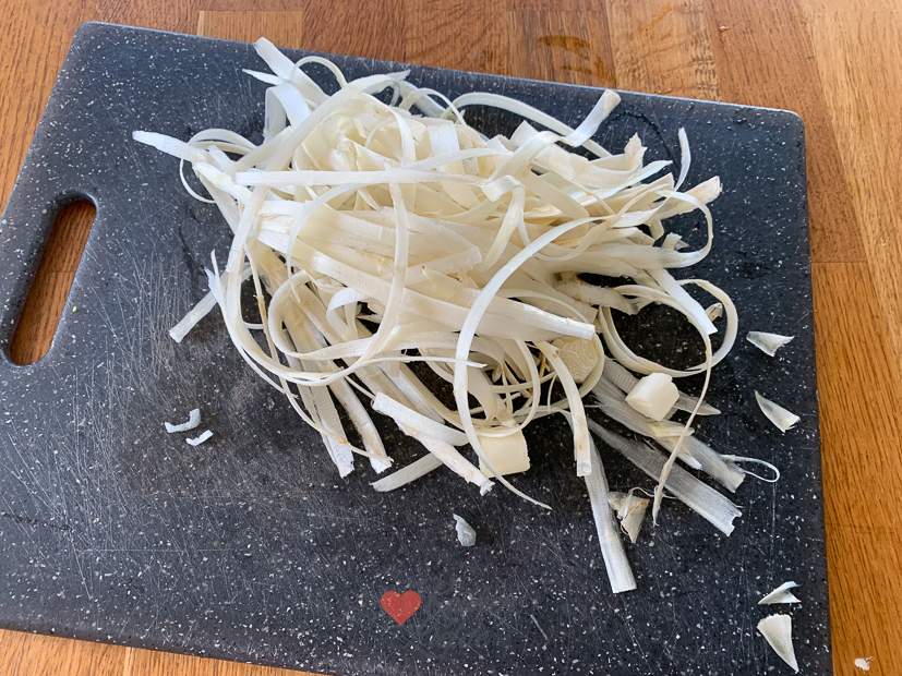 - De aspergeschillen bewaar ik om bouillon van te trekken voor aspergesoep