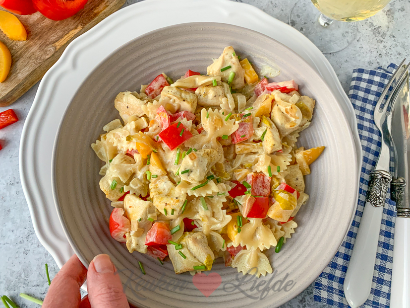 - Pasta met kip, witlof en perzik