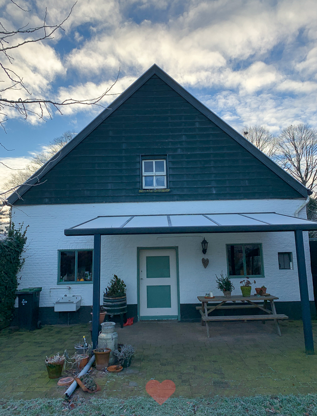 - De achterkant van ons huis waar straks de keuken moet komen en boven een extra slaapkamer… Die tegels mogen ook wel even afgespoten worden… ?