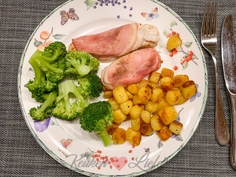 ’s Avonds eten we een Hollands agv’tje wat een zeldzaamheid is in huize Verweij maar ons alledrie prima smaakt. We hadden 2 kipfilets in de lengte doorgesneden zodat ze sneller gaar zijn en gekruid met paprikapoeder, zout en peper en omwikkeld met een plakje spek. Op een bakblik besprenkelen met een beetje olijfolie en 10 tot 15 minuten in de oven op 200 graden. De broccoli was gekookt en daarna omgehusseld met een beetje zeezout en knoflook-peper-rozemarijnolijfolie. Was heerlijk!
