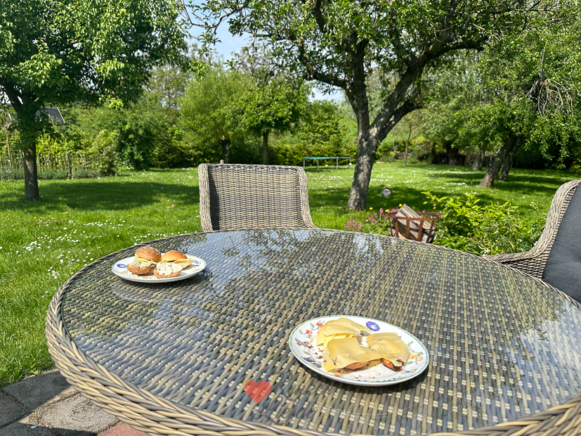 Hemelvaartdag. Johan is vandaag en morgen vrij en we hebben klusjes in en rondom huis gepland. ’s Middags gaan we een potje bowlen, borrelen op het terras, halen we een ijsje bij de boerderijautomaat en ’s avonds steken we thuis het ei aan voor een broodje hamburger. Dit recept.