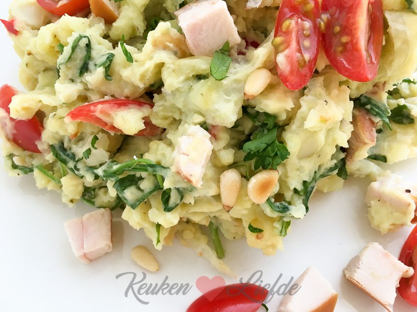 Als Johan en Ella-Marie weer thuis zijn wordt Ella ’s middags opgehaald door de moeder van Johan. Een onverwachts cadeautje want nu kan ik mijn schort nog even omhouden. Het is prachtig weer en de drang om mezelf buiten in de tuin te nestelen met een goed boek en een glas ijsthee onder de parasol is groot, maar je moet je momenten pakken wanneer het kan. En dus maak ik nog een venkelstamppot met gerookte kip en een aardappelsalade met venkel en gerookte kip. De een voor het kookboek en de ander voor de website. Lekker zijn ze allebei!