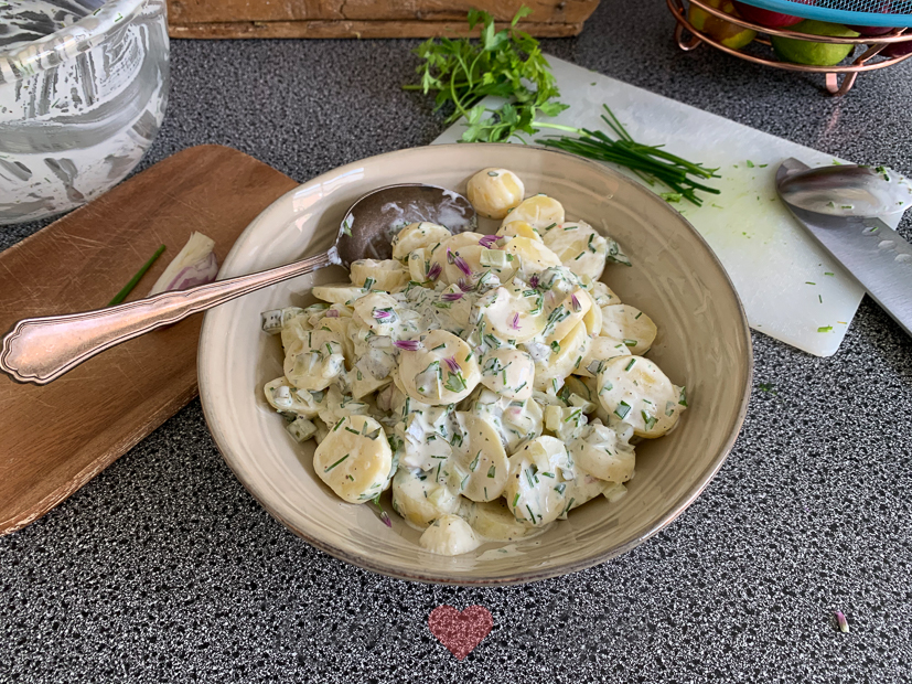 Ik sta weer in de keuken om een recept voor KL te maken: aardappelsalade in een frisse en romige saus. Recept komt eraan!