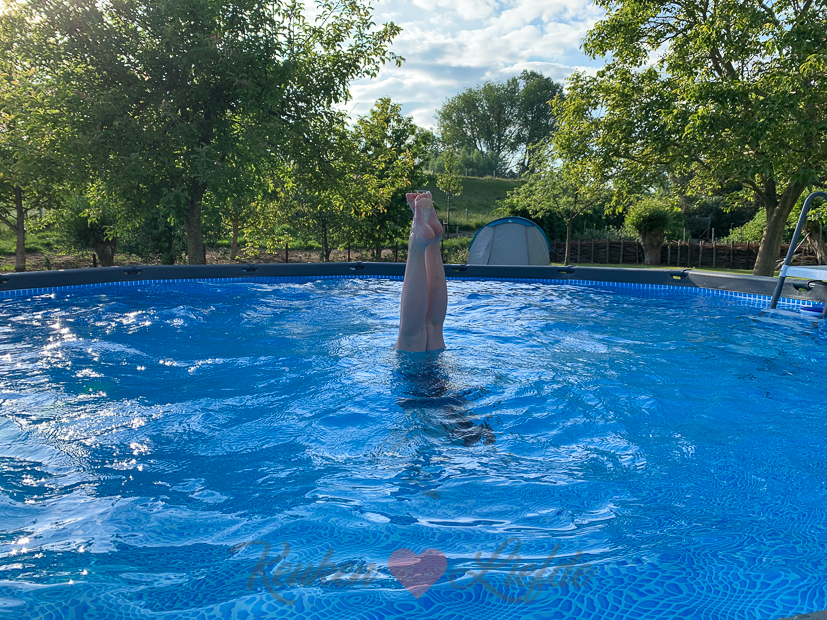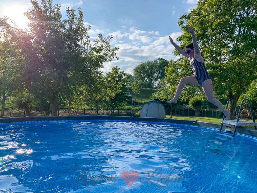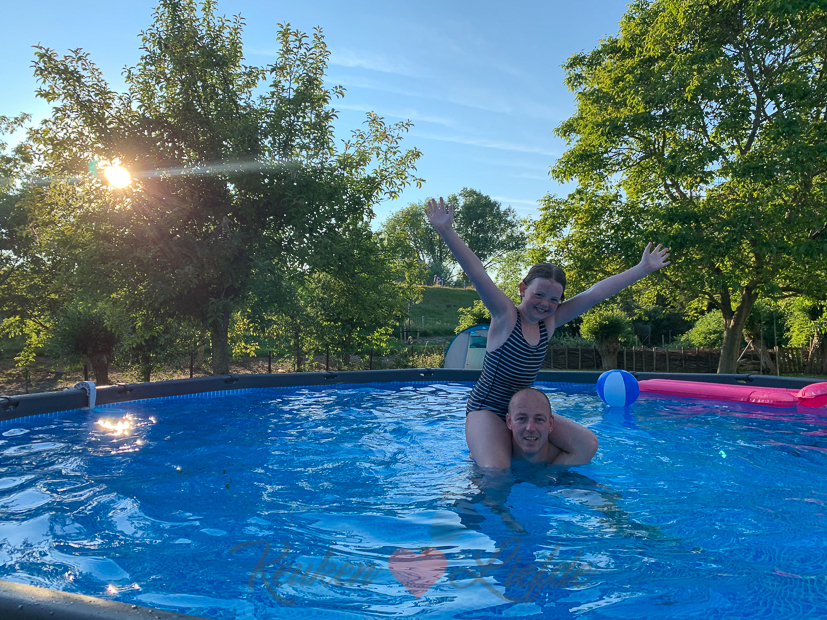 Ella-Marie heeft vandaag een thuiswerkdag en als het schoolwerk af is mag ze zwemmen. De zomer is nog niet eens begonnen, maar wat een plezier hebben we nu al van het zwembad!