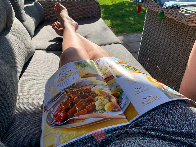 Het is weer een normale dinsdag zoals vanouds. Johan en Ella zijn de deur uit voor werk en school en ik heb het rijk alleen. Zoals meestal op dinsdag werk ik dan grotendeels op kantoor: recepten uitschrijven, foto’s bewerken, mail beantwoorden, etc. Het was lekker weer dus ’s avonds na het eten werd er nog even geplonsd in het zwembad.