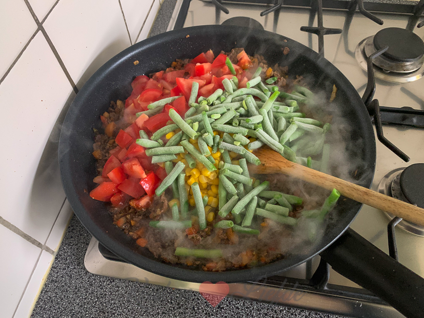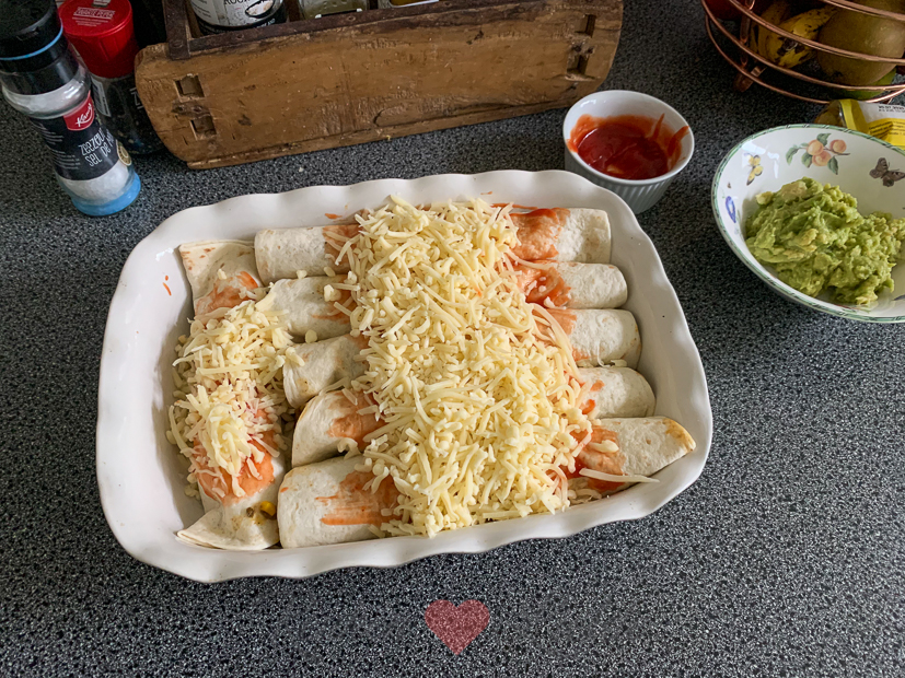 De rest van de zondag rommelen we weer een beetje rondom huis. ’s Avonds maak ik wraps die ik vul met gehakt, mais en sperziebonen, bestrooi met kaas en even gratineer in de oven. Erbij wat guacamole.