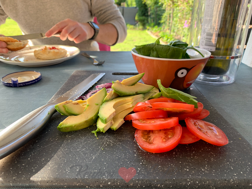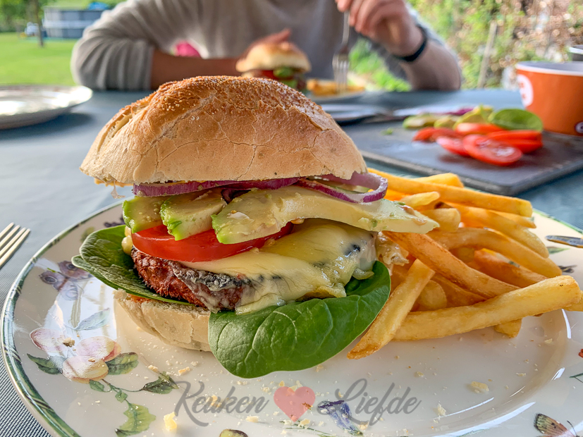 ’s Avonds grillen we bietenburgers (van de Lidl) op de barbecue voor broodje hamburger. Dit keer op een vers afgebakken Italiaanse bol met avocado, sla en spinazie, tomaat en rode ui. Was heerlijk!