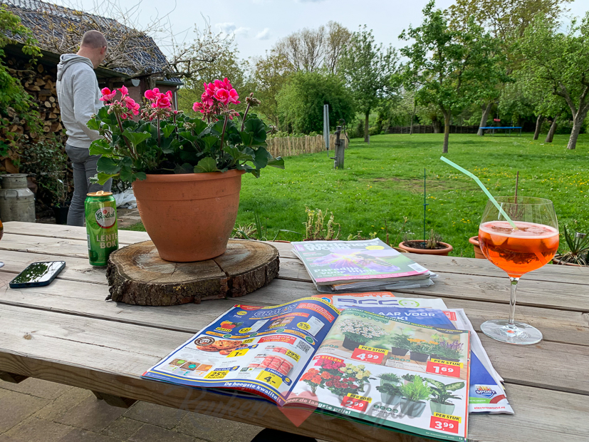 Eenmaal thuis gaat de tv aan en wordt de F1 gekeken. Een beetje een saaie race, maar wel een topresultaat voor onze Max!? Daarna gaan we naar buiten en rommelen nog wat in de tuin.
