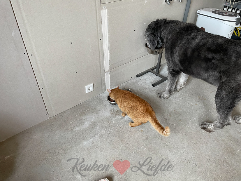 Met de hulp van Johan zijn ouders kunnen de koelkast, wasmachine en droger weer teruggezet worden op de deel. Natuurlijk moet straks alles weer verplaatst worden als de tegelvloer gelegd wordt, maar dat duurt nog even en tot die tijd is het fijn dat alles weer op z’n plek staat. Eind van de ochtend halen Johan en ik een aanrechtblokje met spoelbak op bij onze aannemer. Hij had die nog staan en omdat over een paar weken de keuken wordt afgebroken is een tijdelijk aanrechtblokje wel handig. Nu alleen nog even iets verzinnen om straks tijdelijk op te koken.
