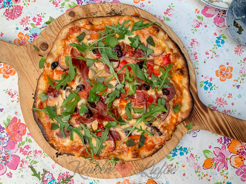 We hebben een heerlijk luierdagje vandaag en doen helemaal niks behalve genieten van het mooie weer. Ella-Marie gaat ’s middags even zwemen in het zwembad, Johan maakt alvast pizzadeeg voor het avondeten en ik schrijf dit kijkje in de keuken. ’s Avonds eten we pizza uit de houtoven! Ben je benieuwd hoe dat nou werkt, pizza bakken in een houtoven? Gisteren deelde ik dit artikel waarin ik je alles vertel over onze houtoven en hoe je daar de lekkerste pizza op bakt!