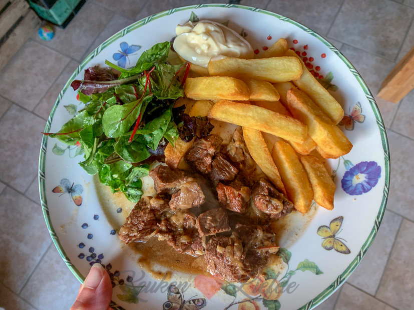 Als ik klaar ben met koken en fotograferen maak ik alvast een begin met het bewerken van de foto’s. Johan komt halverwege de middag weer naar huis en gaat ook nog even aan het werk. ’s Avonds halen we samen een frietje want we hebben niet echt zin om nog te koken. ?