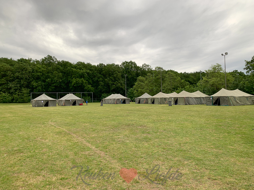 Ella-Marie eet ’s avonds stoofvlees met frietjes en sla. Daarna brengen Johan en ik haar naar de voetbalvereniging in Amerongen voor voetbalkamp! Ze is er de hele week al zenuwachtig voor geweest, want dit is haar allereerste kamp! Ze heeft er superveel zin in! Nadat we het luchtbed hebben opgepompt en Ella in haar tent hebben geïnstalleerd gaan we naar huis.