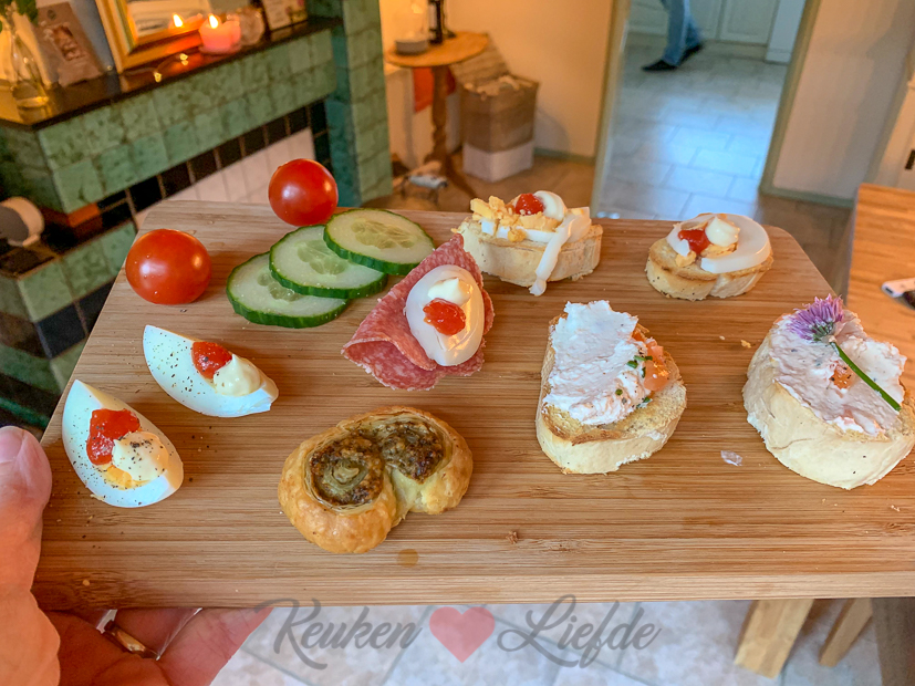 Johan staat de volgende ochtend alweer vroeg op het voetbalkamp in Amerongen om te helpen met de spellen. Ondertussen knoop ik de schort om en ga de keuken in om nog wat KL-recepten te maken: kaas-pestovlinders, blauwe bessen clafoutis en zalmmousse. Ook deze recepten komen eraan!