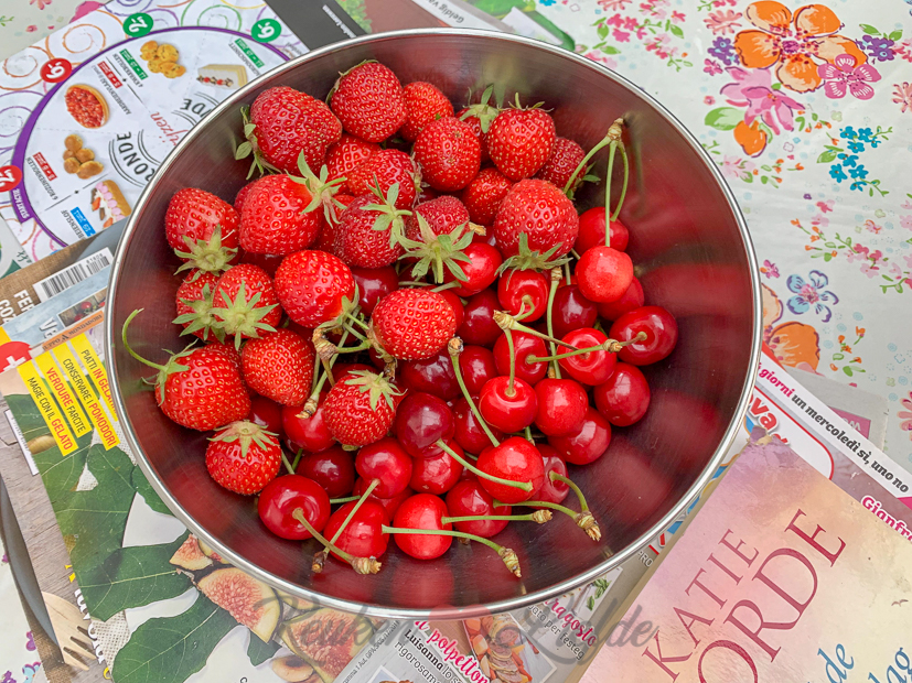 - De oogst van de dag: kersen en aardbeien!