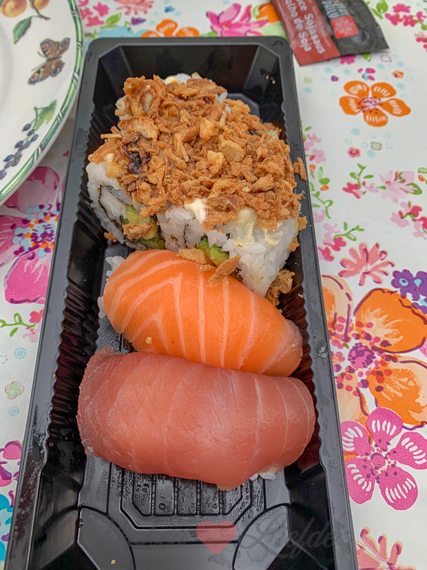 Johan is vandaag in België geweest voor zijn werk en neemt daar bij de Carrefour op verzoek van ‘zijn dames’ verse sushi mee. Omdat het stoofvlees te laat zacht is eet Ella ’s avonds de sushi als avondeten. Johan en ik eten later op de avond alsnog het stoofvlees. Met dikke frieten uit de Airfryer en sla.