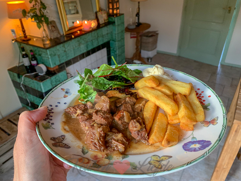 Als ik eind van de ochtend in de supermarkt loop om boodschappen te doen voor het avondeten heb ik ineens zin in stoofvlees. Normaal haal ik het vlees altijd bij de slager maar omdat we geen slager in het dorp hebben koop ik dit keer dikke riblappen in de supermarkt. Nu maar hopen dat het op tijd zacht is voor het avondeten…. Ik maak Belgisch stoofvlees met bier, uien en brood met mosterd. Dit recept!