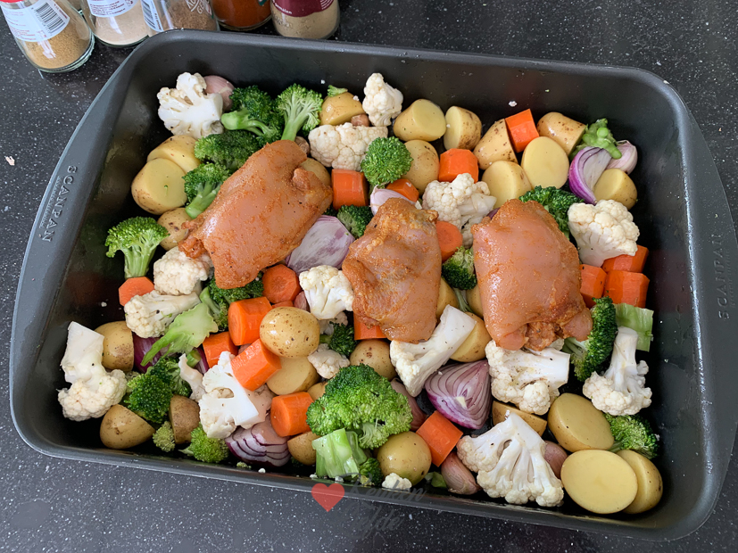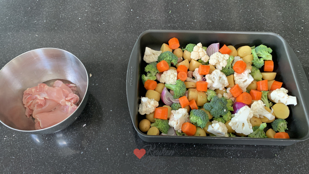 De fietsenmaker had me een berichtje gestuurd dat mijn fiets gemaakt was en opgehaald kon worden. Ik besluit Nacho mee te nemen als ik naar de fietsenmaker wandel. Terugfietsen met Nacho aan de lijn was alleen geen succes en dus liep ik uiteindelijk ook weer terug met een fiets in de ene hand en Nacho in de andere hand. Top plan. Weer thuis maakte ik nog snel een recept (traybake met groenten en gekruide kipdijfilet) voor de website dat ’s avonds opnieuw werd opgewarmd als avondeten. Ik ben dol op traybakes want je kunt alles van tevoren al snijden en klaarzetten, hebt bijna geen afwas en iedereen vindt het lekker.