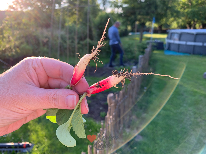- Verse radijsjes. Heerlijk met een drizzle goede olijfolie en een snuf zeezout.