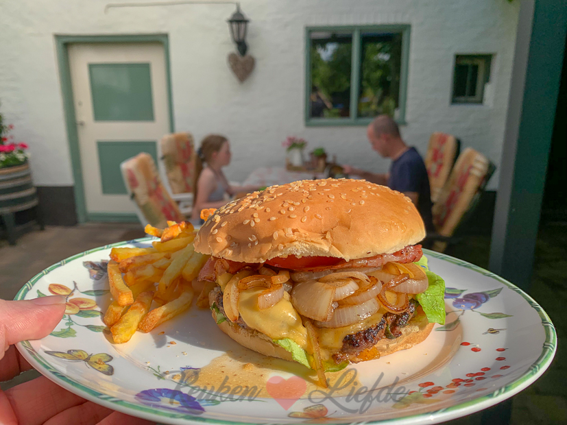 ’s Avonds staat er broodje hamburger op het menu! Met Franse frietjes uit de airfryer. Als als kers op de hamburger taart kunnen we ook nog lekker buiten eten!
