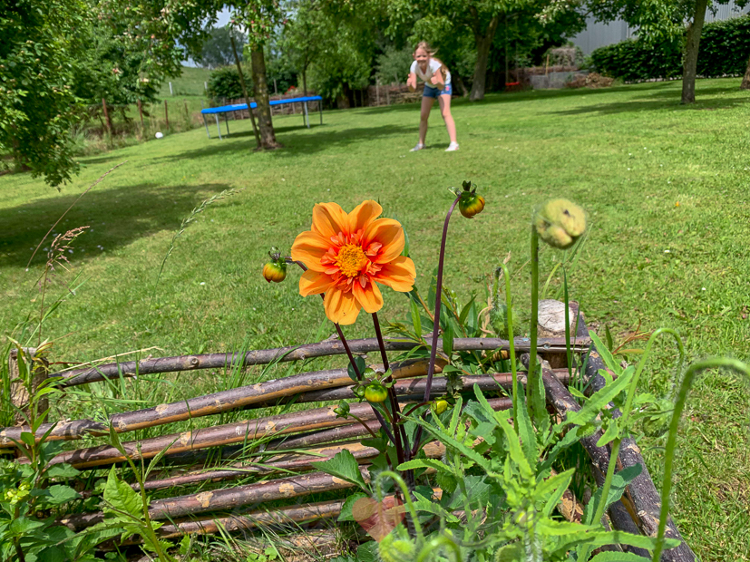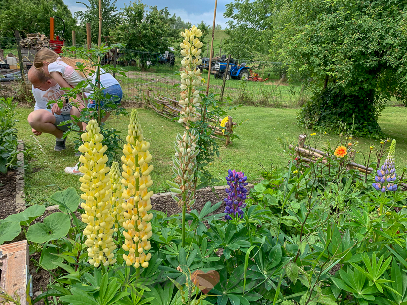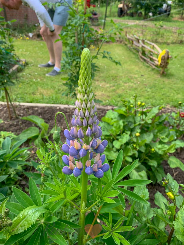 In onze moestuin is elke dag weer wat nieuws te zien. In het bloemenbed staat de lupine in volle bloei en ook de eerste dahlia’s laten zich zien. Maar ook de tuinbonen en sperziebonen groeien hard!