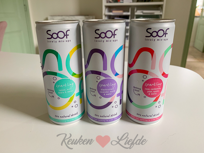 Ik krijg een pakketje thuisbezorgd van Soof met drie blikjes bruiswater met een smaakje. Lekker! De aanmaaksiroop van Soof staat ook al bij ons in de koelkast, die is heerlijk. Hun producten zijn 100% natuurlijk, zonder toevoegingen.
