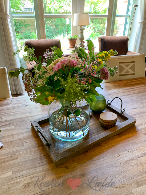 Ik maakte ook weer nieuwe boeketjes voor in huis met bloemen uit de tuin. Instant vrolijkheid!