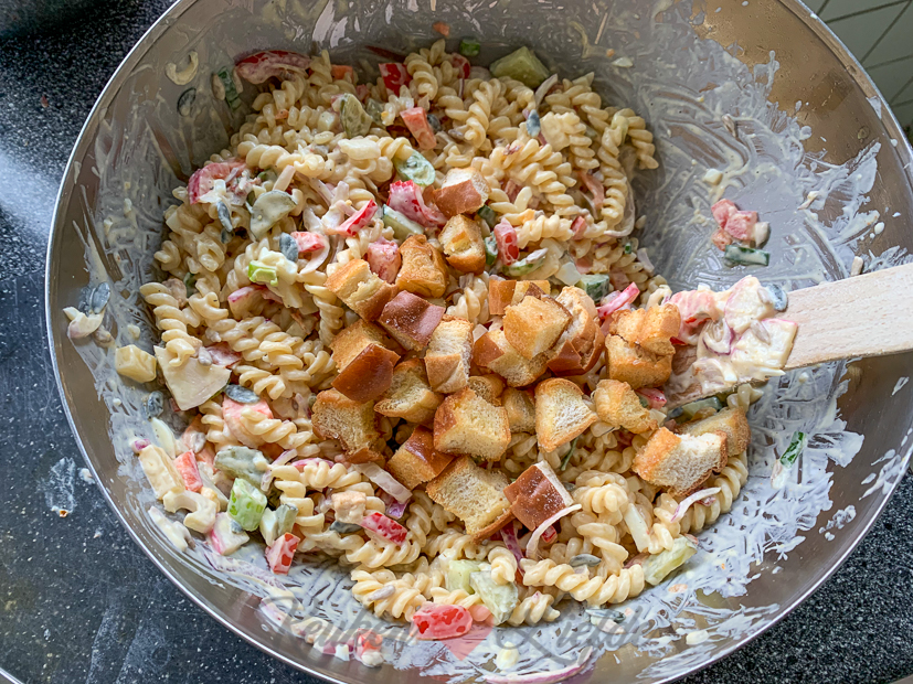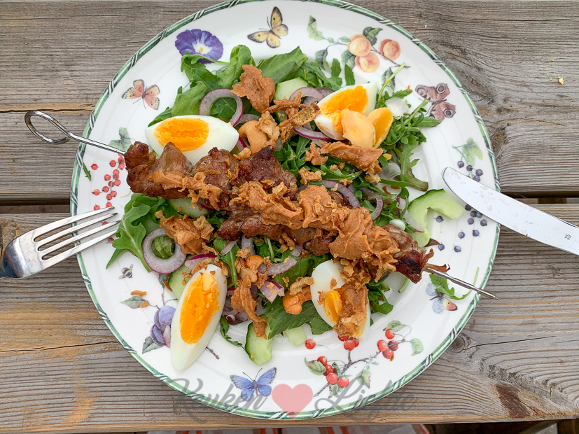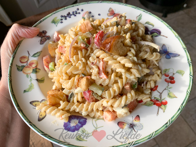 Het wordt prachtig weer vandaag dus ik geef mezelf een dagje vrij en duik de tuin in. Ik haal het afdekzeil van het zwembad af en stofzuig de bodem van het zwembad. Verder rommel ik lekker in de tuin. Johan maakt ’s avonds zijn befaamde pastasalade. Echt, niemand kan dit beter dan Johan. Deze was ook weer gruwelijk lekker!