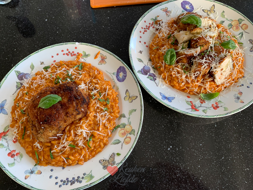 Ik heb vandaag een kookdag en maak weer een aantal lekkere recepten voor de website. Als ik daarmee klaar ben ik ga ik in de wc alvast wat gaten dichtstoppen en afkitten. Als Ella ’s middags uit school komt heeft ze zin in iets lekkers en stuur ik haar de moestuin in. Snoepen met radijsjes, aardbeien en frambozen is niet verkeerd. Voor het avondeten maak ik tomatenrisotto en serveer die met de gevulde kipschnitzels die ik eerder op de dag had gemaakt.