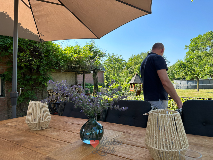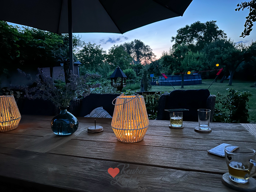 Ella-Marie is al vroeg weg voor een voetbaltoernooi. Daarna begint de zomerstop en is er voorlopig geen voetbal meer. Johan en ik gaan ’s ochtends samen op pad. We moesten op zoek naar een nieuwe parasol en er moesten boodschappen gedaan worden. Op de terugweg naar huis stopten we in het dorp voor een bakje kibbeling en broodje haring. ’s Middags werd thuis de nieuwe waterkoker van SMEG bezorgd. Ik had een tijdje geleden een waterkoker bij de Action gekocht en dat was een complete miskoop. Dus toch maar wat meer uitgegeven maar dan heb je ook wat. 😍 Ella was ’s middags bij een vriendinnetje en bleef daar ook eten. Johan en ik aten een eenvoudige ceasar salad met gebakken zalm. Johan vond dat ik het recept daarvan moest delen op KL omdat het zo lekker was. Dus dat ga ik binnenkort doen. ’s Avonds werd er tot laat buiten gezeten en film gekeken.