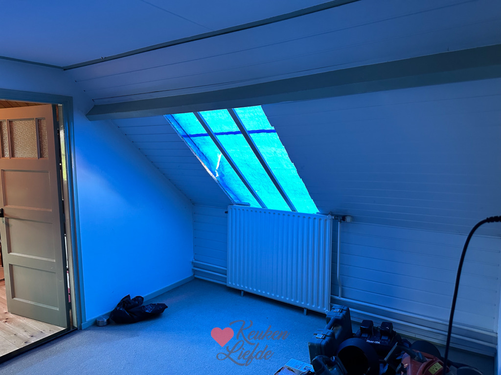 Het wordt steeds gezelliger op onze bovenverdieping. De dakkapel en dakramen zijn inmiddels weggehaald en het dak wordt aan het eind van de dag afgedekt met zeil. Sfeertje hoor. Als Johan uit zijn werk komt mag hij direct het huis stofzuigen terwijl ik aan de slag ga om een potje eten te koken. Het werd een makkelijke eenpansorzo met tomatenpuree en room. Ziet er niet uit maar was erg lekker.