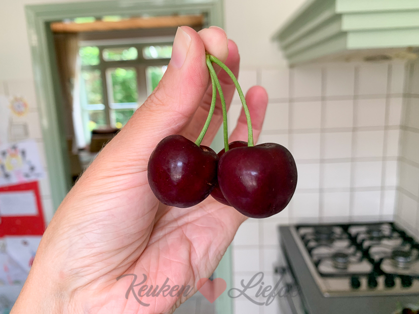 Tijd om de grote boodschappen te doen. Ik vind boodschappen doen verschrikkelijk en nu met al die regels (die ik goed begrijp) helemaal. We hebben de boodschappen een tijdje laten thuisbezorgen, maar ik heb het idee dat dat veel duurder is. Ook irriteert het me dat aanbiedingen, maar ook gewone artikelen, vaak uitverkocht zijn. Of dat bepaalde dingen die ik graag wil hebben, alleen in de winkel verkrijgbaar zijn. Heb ik in de winkel allemaal nooit last van. Reden genoeg om voortaan zelf de boodschappen maar weer te halen. Op de terugweg naar huis rijd ik meteen even langs het fruitstalletje van onze buren (fruitbedrijf Vink) om kersen te halen. Ik haalde een bakje Merchant kersen. Zo lekker! Op KL staan behoorlijk wat kersenrecepten. Tik ‘kersen’ in op de zoekbalk van de homepage en alle kersenrecepten verschijnen.