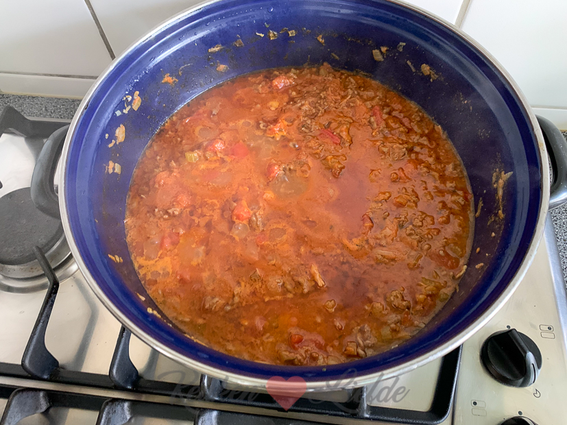 Op het menu vandaag: macaroni met bolognesaus! (Ik maak altijd deze bologneseaus). Tijdens het koken kwam ik erachter dat ik geen passata had, dus gebruikte ik een pak gehakte tomaten en 2 eetlepels tomatenpuree. Was ook heerlijk.
