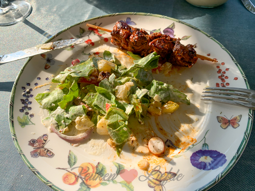 Eind van de middag gaan ze weer naar huis. Wij steken ’s avonds nog een keer de barbecue aan, want we hebben nog wat vlees van gisteren over. Erbij nog wat stokbrood, sla (jazeker!) en zelfgebakken frietjes. Smakelijke afsluiting van de week!