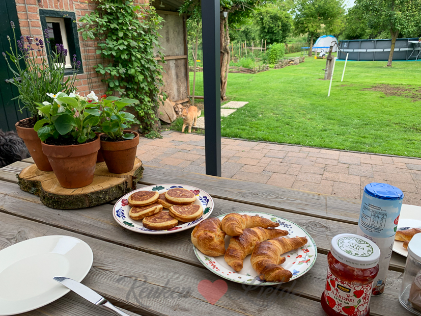 Vaderdag! Nadat papa op bed het zelfgemaakte cadeautje van Ella-Marie heeft uitgepakt gaan we lekker ontbijten.