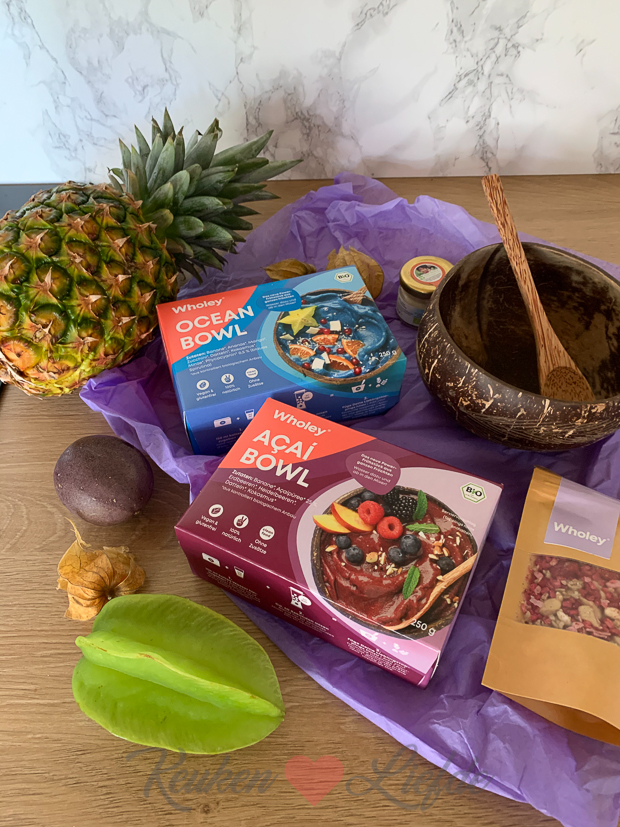 Deze ijskoude foodpost van Wholey kwam binnen. Leuk! De doosjes zitten vol met een mix van 100% biologisch fruit, groenten en kruiden, zonder suiker of andere toevoegingen en kun je zo in de blender gooien met wat (kokos)water erbij. Je vindt ze in het schap van de Jumbo. Vooral Ella-Marie is dol op kleurrijke bowls, dus deze leg ik voor haar opzij.