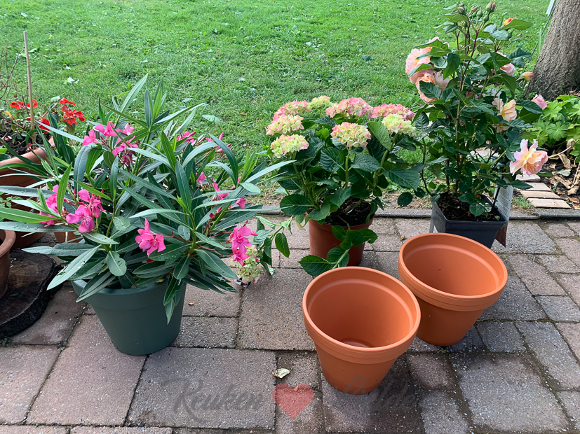 Daarna rijden Johan en ik even naar het tuincentrum om wat bloeiende plantjes te halen voor op het terras. De andere plantjes die nu op het terras staan zien er na het overwinteren nog steeds een beetje armetierig uit vinden we.