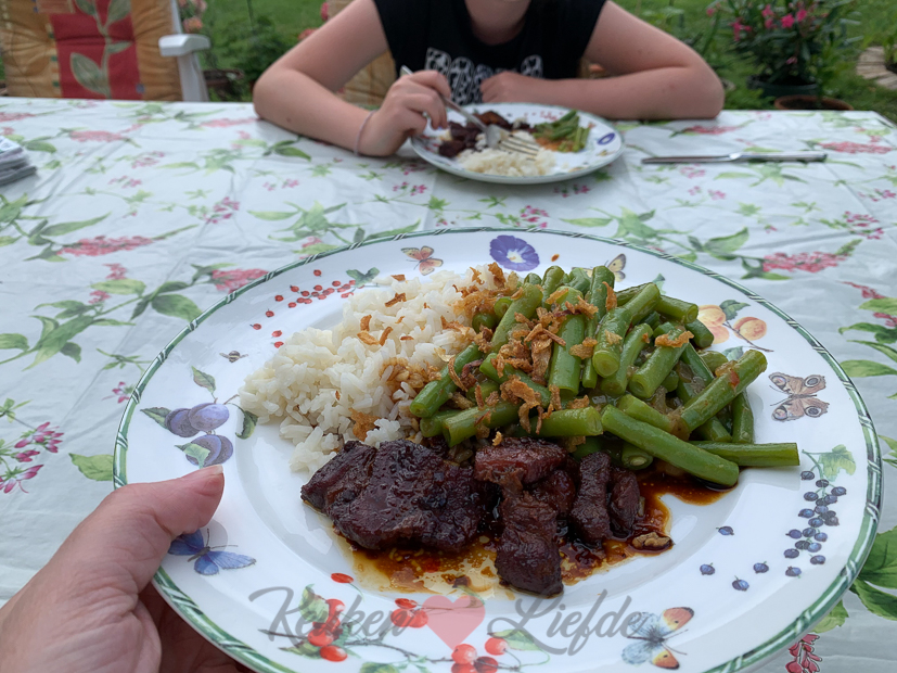 De rest van de dag wordt er in en rondom huis gerommeld en ’s middags wordt er natuurlijk F1 gekeken. Voor het avondeten maak ik Indische speklapjes in ketjapsaus, sajoerboontjes en rijst. Smullen!