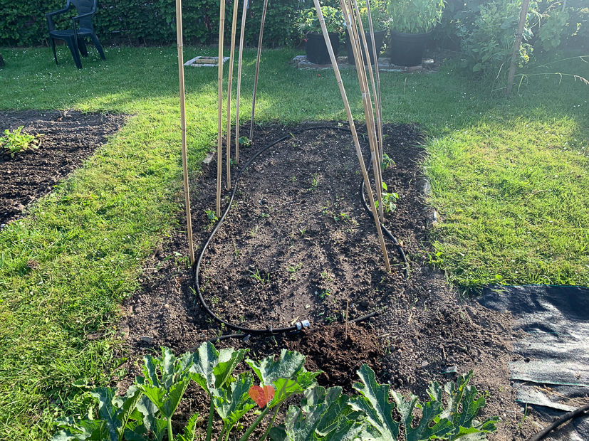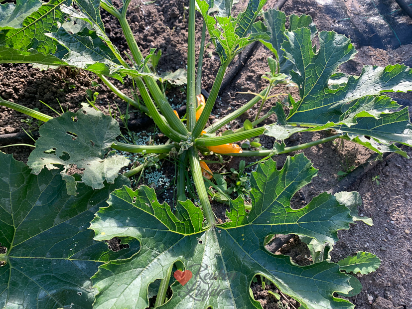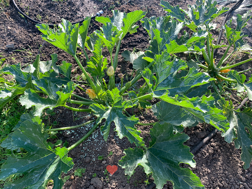 - Helaas werden de gele courgettes opgegeten door slakken dus strooien we slakkenkorrels…